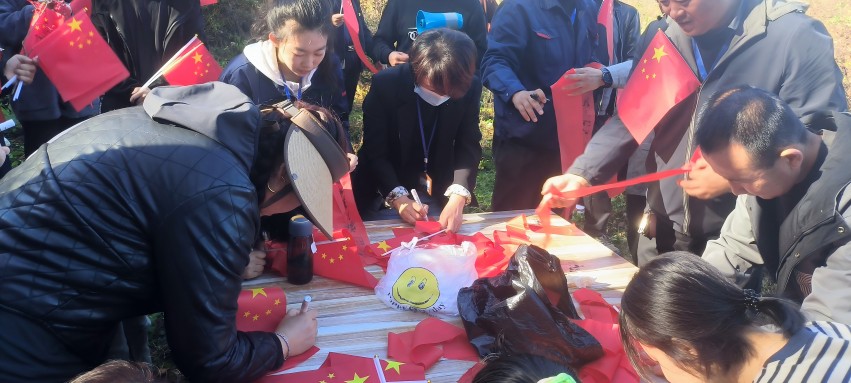 清晨,朝阳初升,员工们精神抖擞,怀着对祖国、公司和亲人的美好情感踏上登高之旅。
