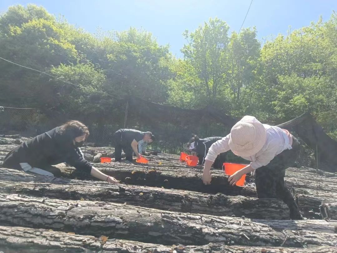 澳门葡京博彩官网平台公司木耳基地迎来今年首轮黑木耳的采摘季。